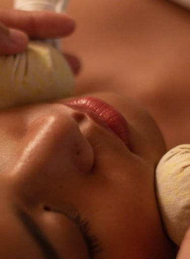 During a Thai Facial Massage, the therapist uses gentle, rhythmic movements to stimulate facial muscles and promote circulation. This may be combined with pressure point work and gentle stretching of the neck and shoulders.