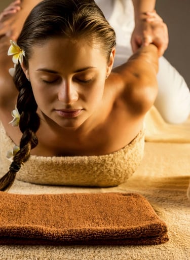 Deep Compression and Acupressure: The practitioner applies deep, rhythmic pressure along the body's energy lines (Sen lines) and on specific trigger points using their hands, thumbs, elbows, knees, and feet. This helps to release deep-seated muscle tension and improve circulation.